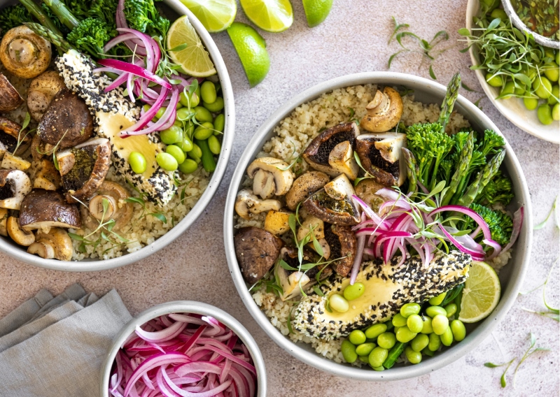 We’re all-in with the mindful mushrooms vibe. Cauli Rice & Roasted Mushroom Dinner Bowls with Herb Vinaigrette are served!