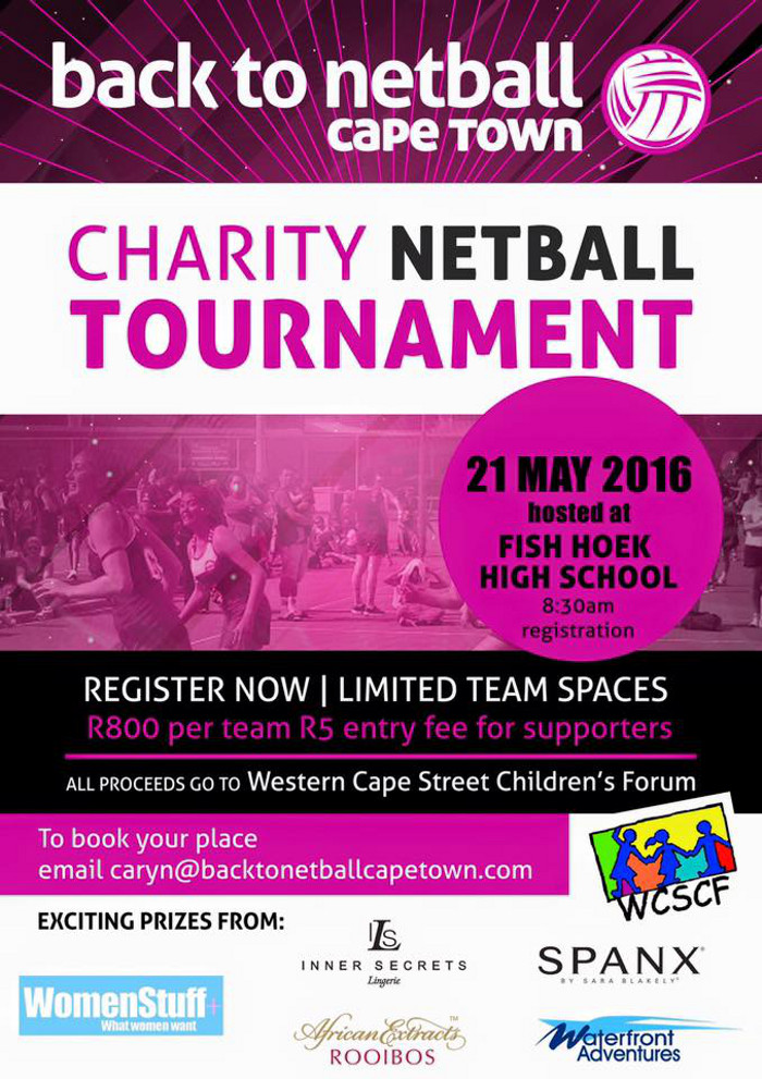 The success of these social netball evenings prompted the group to start their own tournament in the southern suburbs of Cape Town and invite other teams to play against them and raise funds for a worthy cause at the same time. The tournament invites 16 teams with 7 players per team (and 1 substitute) to enter the tournament at R800 per team with all proceeds from the tournament being donated to the Western Cape Street Children’s Forum. This incredible charity aims to protect children from the harsh reality of street life by getting and keeping children off the street with services that include early intervention and protection, outreach, drop-in  residential, education, therapy, family and community empowerment projects and programmes.