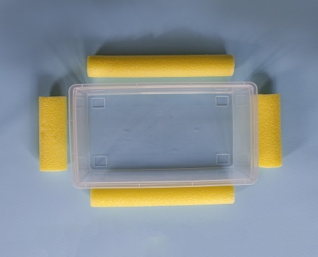 Measure, mark and cut the pool noodle into two pieces of 220mm and two pieces of 350mm.