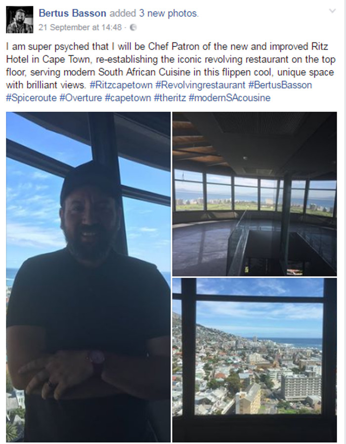 As for the food, Basson took to Facebook to give us some hints on what we can expect; “I am super psyched that I will be Chef Patron of the new and improved Ritz Hotel in Cape Town, re-establishing the iconic revolving restaurant on the top floor, serving modern South African Cuisine in this flipping cool, unique space with brilliant views,” said Basson. The local chef is known for his commitment to great food made with fresh, local ingredients and an acute attention to detail and we cannot wait to see what Basson has in store for us at the new Sea Point eatery.
